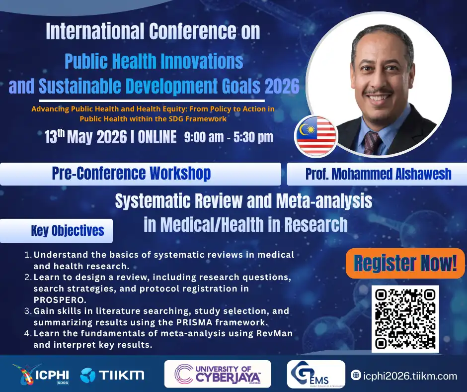 Enhance your conference experience by participating in the ICPHI 2026 Pre-Conference Workshops (Virtual), designed to provide practical knowledge and hands-on learning for researchers, practitioners, and students in public health and related fields. These expert-led sessions will cover key topics such as healthcare payment systems, systematic reviews and meta-analysis, and multivariable statistical methods used in medical and health research. Participants will gain valuable methodological skills, deepen their understanding of advanced research techniques, and engage directly with internationally recognized scholars. These workshops offer a unique opportunity to strengthen research capacity, ask questions, and build professional connections before the main conference begins.